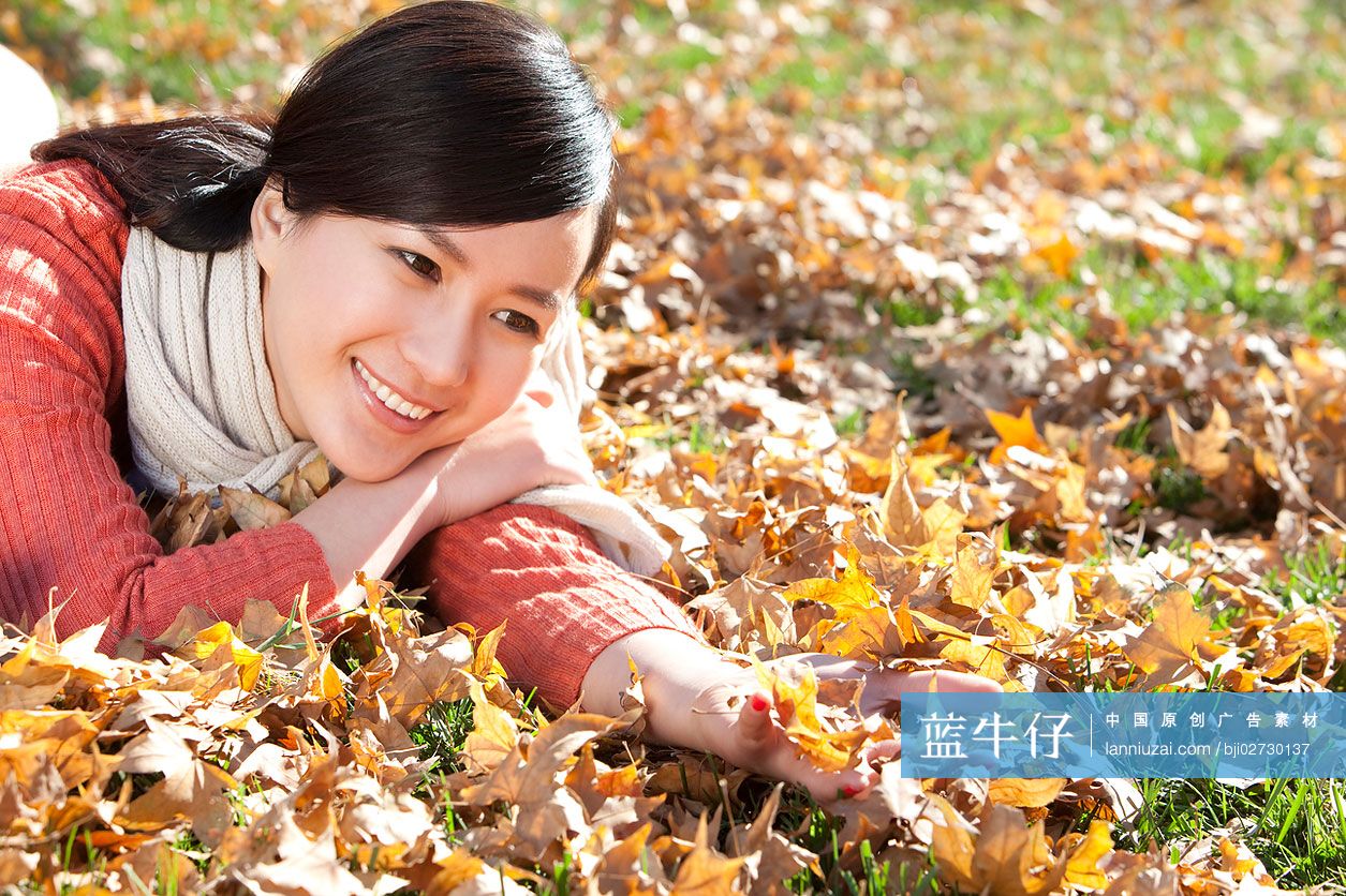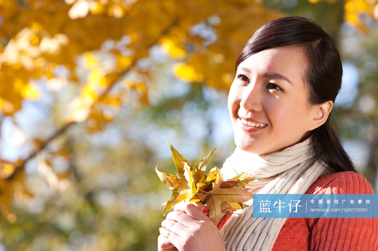 Young Chinese Woman Holding Up Autumn Leaves High res Stock Photo For