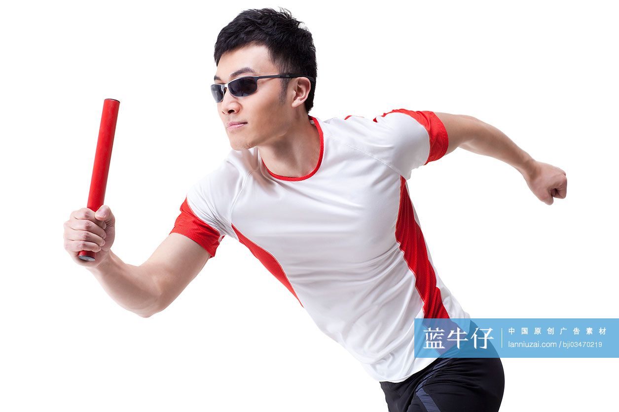 Male Chinese Athlete With Relay Baton Reaching The Finish Line High res